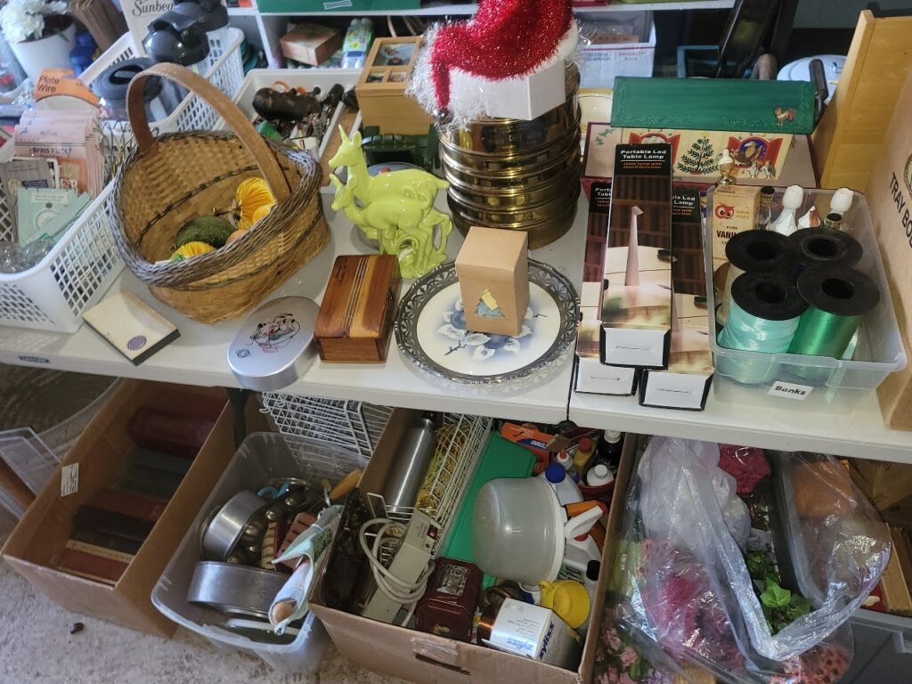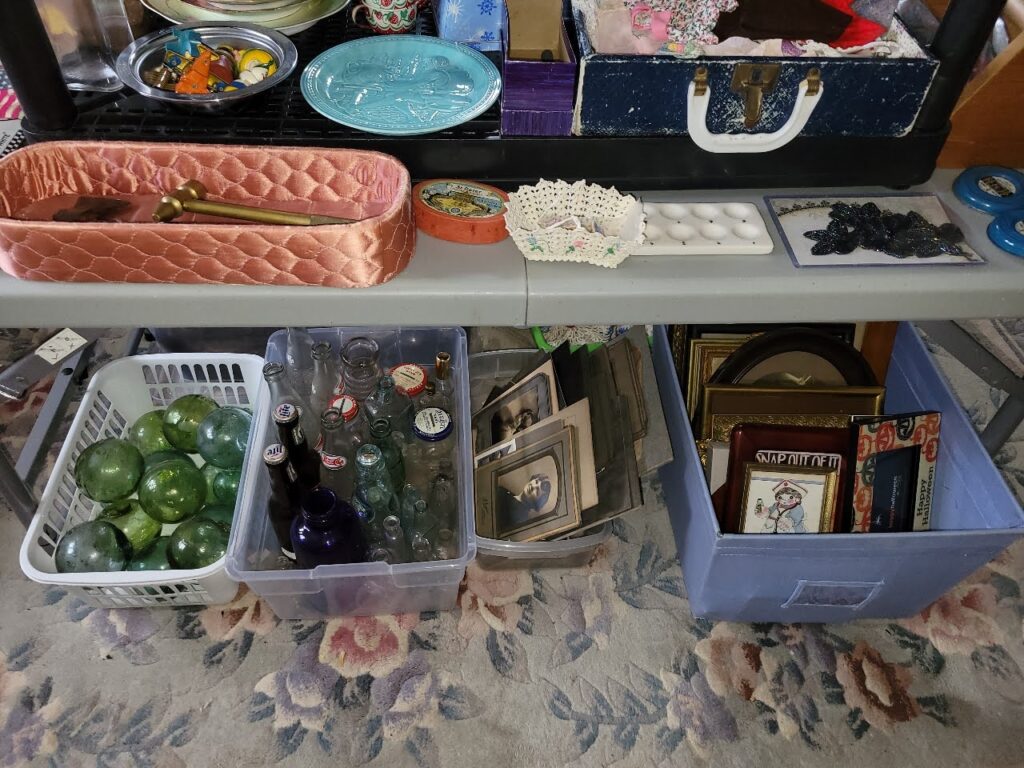 DUE TO THE AMOUNT OF SMALL ITEMS IN THE HOME, LARGE BAGS WILL NOT BE ALLOWED. WE WILL PROVIDE BAGS AND BASKETS FOR SHOPPING.
