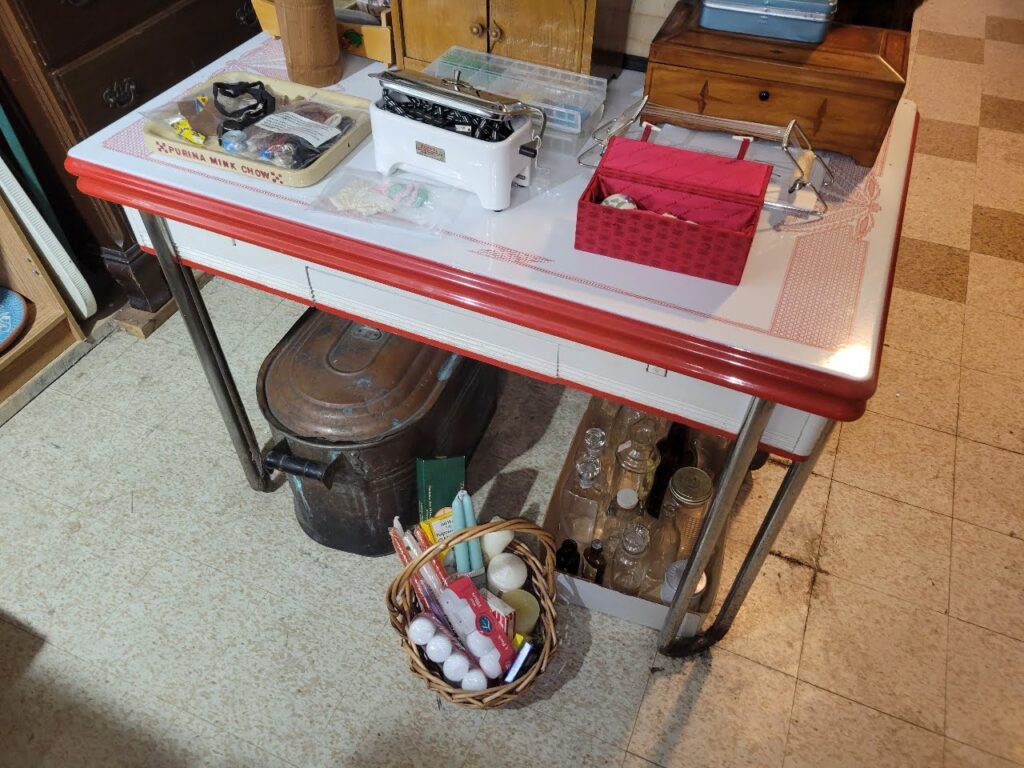 – Enamel Top Tables & Cabinets